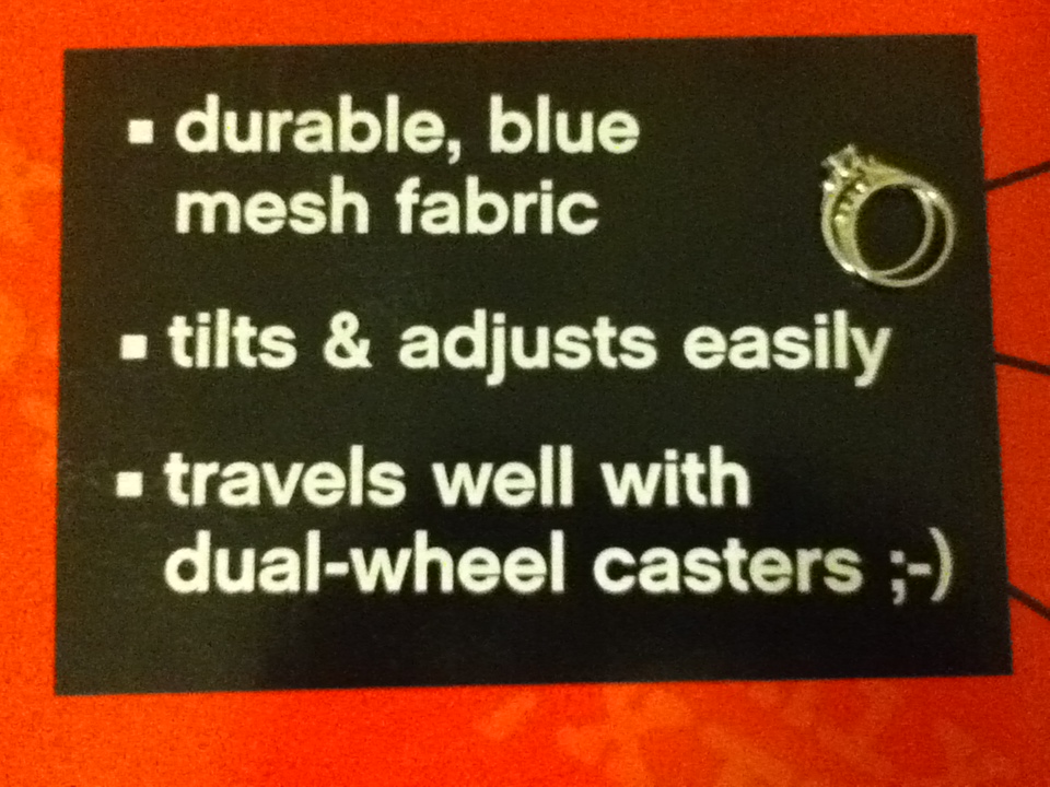 Day 654 – New Office Chair Posted on April 26, 2011 by 365 days of marriage This is from my new office chair. I didn’t notice until I got the box in the car….but if I had seen it before I bought the chair….it would have been the deciding factor. I’m a sucker for fun packaging. Share this: Click to share on Facebook (Opens in new window) Facebook Click to share on X (Opens in new window) X Click to share on Pinterest (Opens in new window) Pinterest Click to share on LinkedIn (Opens in new window) LinkedIn Click to email a link to a friend (Opens in new window) Email Click to share on Tumblr (Opens in new window) Tumblr Click to share on Reddit (Opens in new window) Reddit Click to print (Opens in new window) Print Like Loading... Related