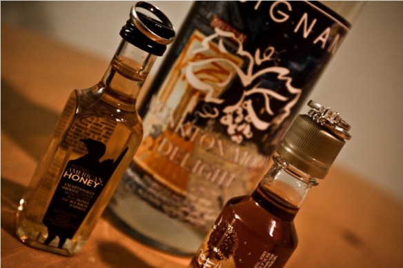 Today we decided to go get a bottle of wine and just chill together. Something we haven’t done in a while. It was a little anniversary celebration, since we didn’t get to hang out last night. We went to our local liquor store and found, really, the most perfect bottle of wine. It’s called Monkton Moon Delight by Basignani Winery. What made this the most perfect bottle of wine was that we were married in Monkton! And to enjoy this bottle just a day after our anniversary was really awesome. We also got some little “mini bar” bottles. We like to try something new every so often, and it’s a great way to do so without buying the whole bottle. I love that our wedding picture is in the background! Thank you Bret for taking this picture! You’ve grown so much as a photographer in the past two years! I’m so very proud of you!