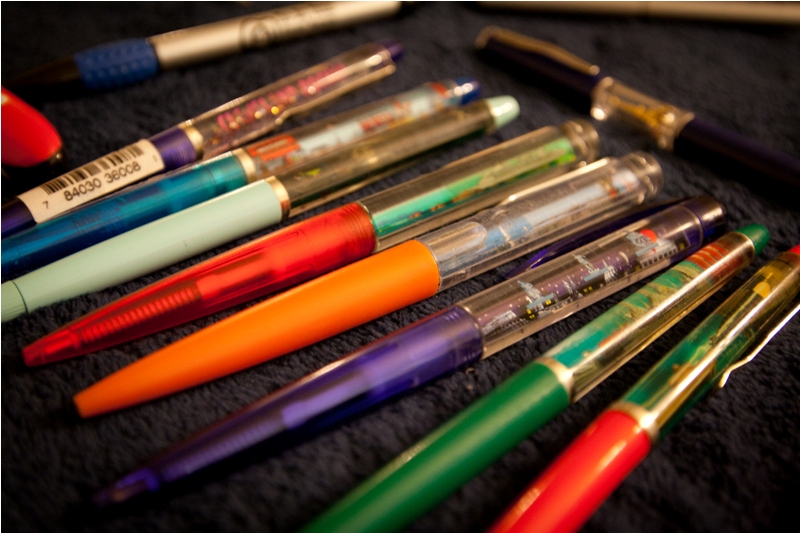 I love looking at and playing with the clear pens with moving parts. They’re so old school and I have some from really cool places.