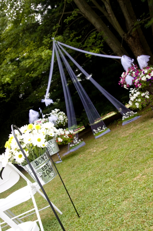 This wonderful shot is of the ceremony site before the wedding. Since we’re still housesitting, I think it’s fitting to share this pic of my parents’ backyard! 🙂