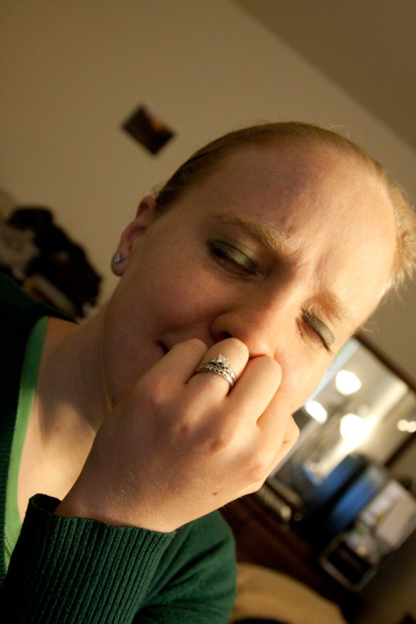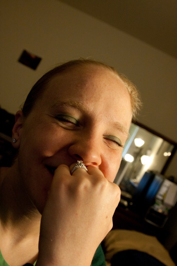 Anyways, in honor of St. Patty’s Day, I’m wearing my green to the rehearsal tonight. I even put on green eyeshadow!