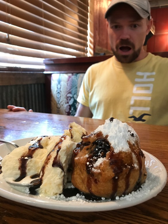 One thing I love is KFC. I had mentioned a week or so before that KFC was one of my favorites to Bret. He got off at an exit with the intention of getting gas, and me taking over the driving. He was having trouble passing to get in the turn lane and we missed the gas station. I jokingly said, well, we could go to the KFC. No no, I’m just kidding. Turns out, that was his plan all along. He had been thinking we HAVE to go to a Kentucky Fried Chicken….IN Kentucky. It turns out it was one that offered a buffet and we of course partook.