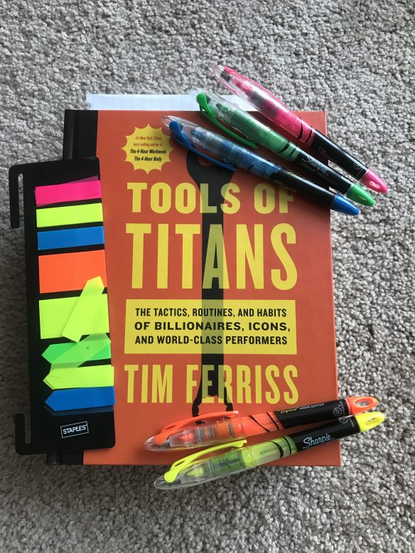 Even the last book I bought hasn’t been read that much. Though, reading Dream Big, Think Small: Living an Extraordinary Life One Day at a Time* really has had a big impact on how I think about things. What I love about Tools Of The Titans is how it’s split into bite size chapters, and the system I created for reading it (highlighting in different colors), helps me keep track of what I have and haven’t read. I am hopeful that if I can add reading a chapter or two into my routine will help me to finally finish this massive (707 pages thank you very much) book.