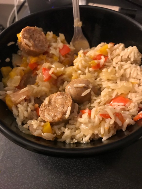 But in a case of utter serendipity, my cooking life shifted. First, I went to a friend’s house and she made something in her Instapot. She legit, threw in raw sausages, cut veggies, poured in some broth, and pressed a button. And made a box or two of rice.