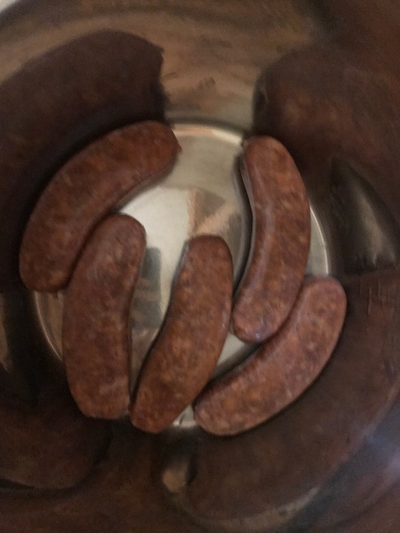 I even started a timer to see how long it would take. What? I’m analytical and like tracking things….are you surprised by this? Time to open sausages and dump in pot – about a minute.