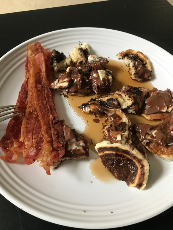 What followed was lots of burnt pancakes, pancake mix all over me, almost burnt bacon, lots of words we don’t normally say, and a “well, THAT is why we don’t cook!”