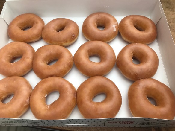 Yesterday, a brand new Krispy Kreme opened in our neighborhood. We had thought about waiting in line for the opening (and a chance at being first) but ended up staying in bed. This turned out to be a good call because the first person in line arrived at 9:45 the night before.