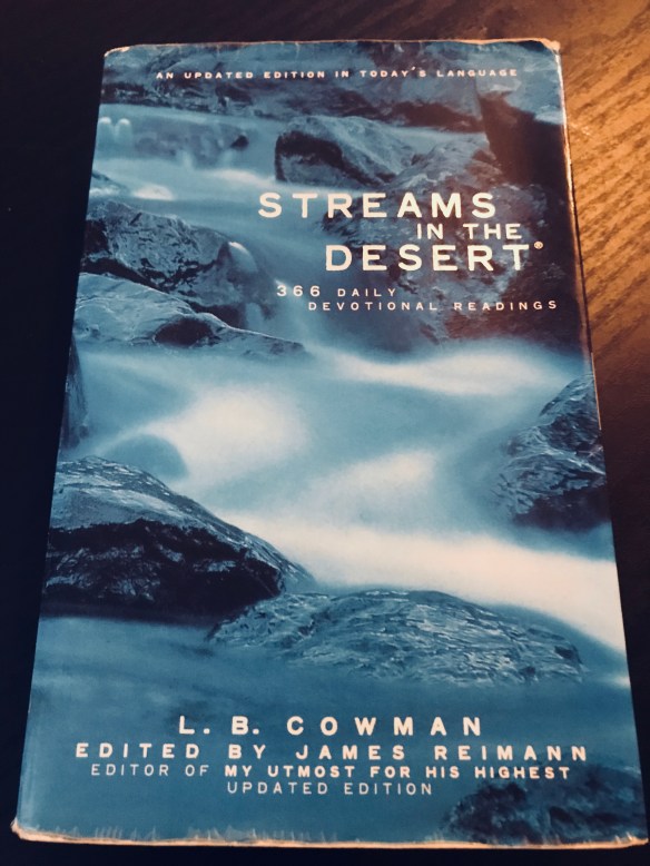 I’ve read Streams in the Desert* by L. B. Cowman several times and I always get something good out of it. It’s like most year devotionals in the format (focus on a verse/passage, talk about the verse) but what I find different than others I’ve read is that it is very real. It doesn’t give a fluffy, this Christian life stuff is easy and great, type of advice. It’s a devotional that touches on when what we want is delayed (or never achieved), or we’re weighed down with sadness and regret. Here’s a great snapshot from June 4: