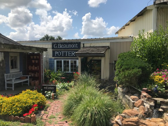 The shop itself is so much fun to browse, with tons of beautiful pieces of pottery, it is an experience. While looking around, I came across the potter, eating his lunch. He joked about this and then said, wait, I know you.