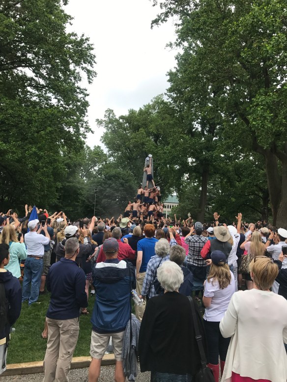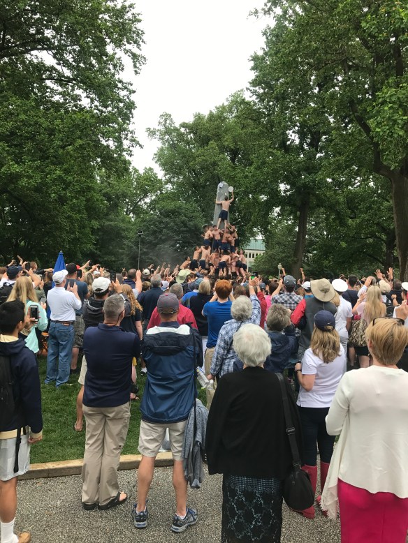 One of the immense benefits of working in downtown Annapolis about once a week is that I am within walking distance of the United States Naval Academy and am able to walk over and watch the Herndon Climb. Last year was so much fun with my client, Lori, that we of course went again. We found a good spot to watch, and started chatting with the family next to us. They kept calling out for Joe. As it turned out, the plebe that topped the hat was none other than Joe! It was SO awesome to share the joy with them. Lori and I were crying and laughing and jumping up and down. This is a really amazing event and I highly recommend you check it out if you’re in town. Way to go Joe!