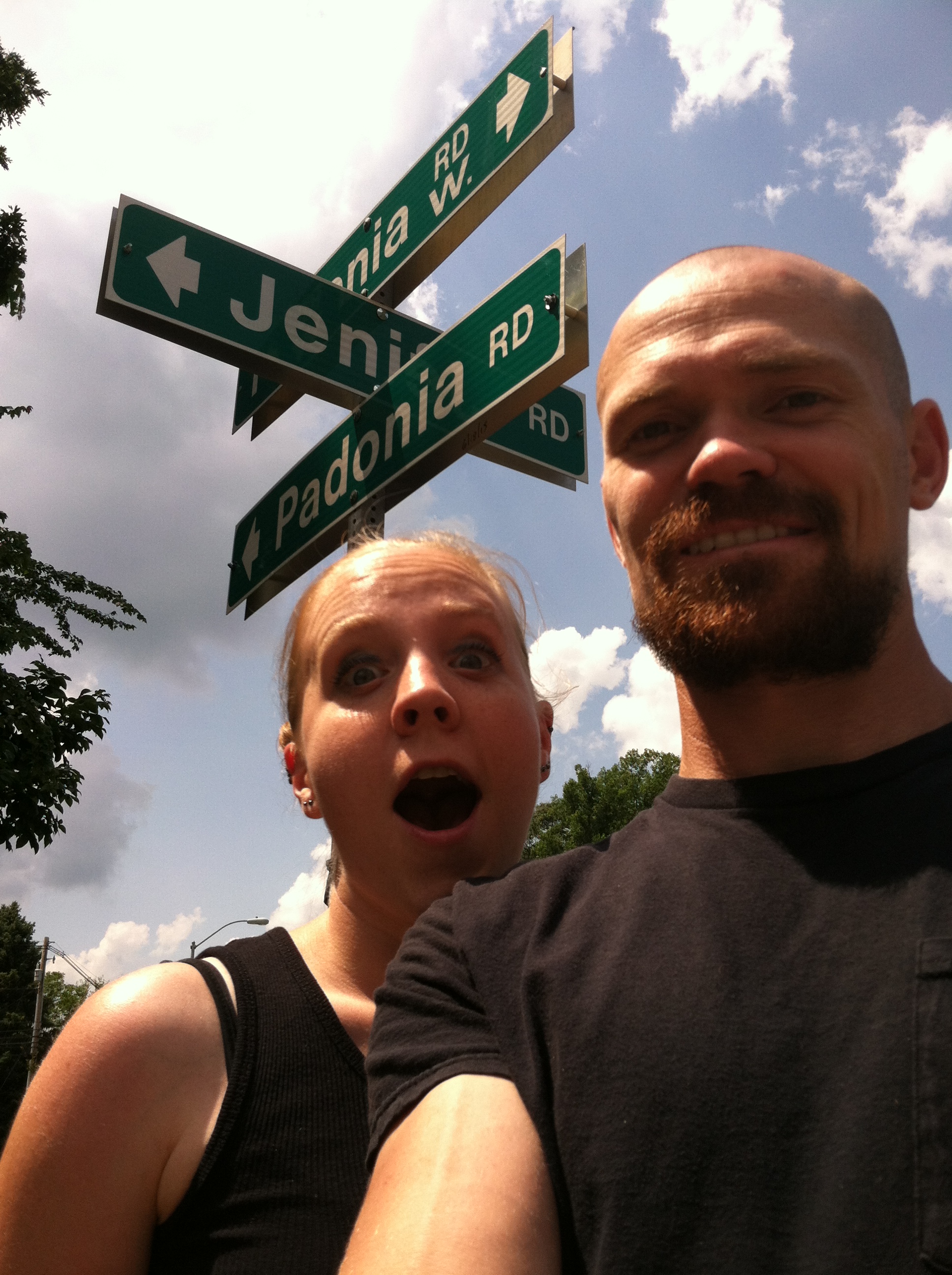 Street sign with one of our names on it. We fudged this one JUST a little bit. 🙂