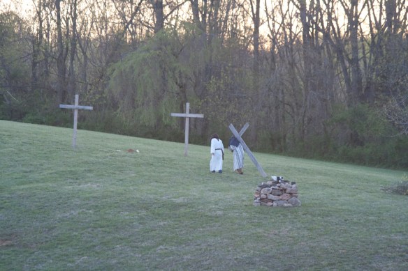 The trumpet plays as actors carry the cross to the top of the hill (one of which was my brother!) I always get teary eyed and goosebumped at this point.