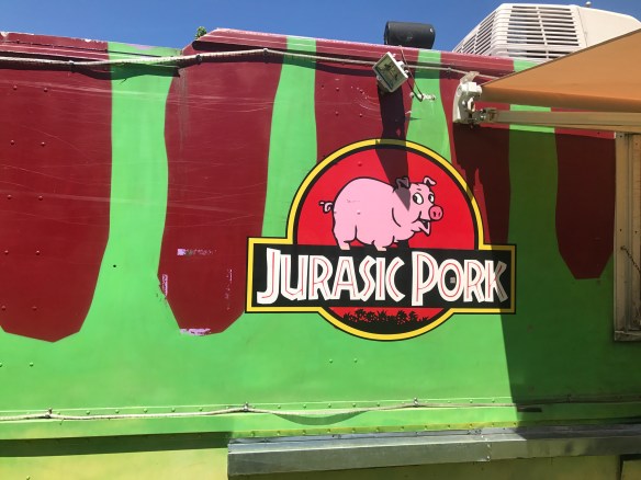 It turns out Bret had a few surprises at work! It’s teacher appreciation week, so there have been mountains of free food. Yesterday, they brought in a food truck, and a hilariously named one – Jurasic Pork BBQ!! The guy was so nice and gave me something to eat too.