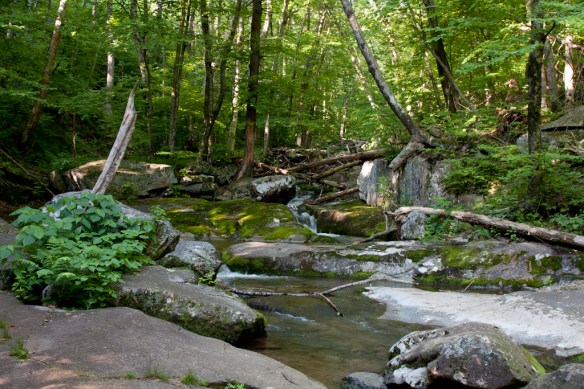 To the left of the tent was a small stream and to the right and behind was a larger stream (that you follow for most of the hike…with LOTS of waterfalls). So we were essentially on an island! It was really neat…at first….but let me just tell you, water makes sounds like other things. There were several times we both thought we heard people….and unless they were at the third campsite and got up before we did….there was no one anywhere near us. Every crackle of the water sounded like a bear to me.