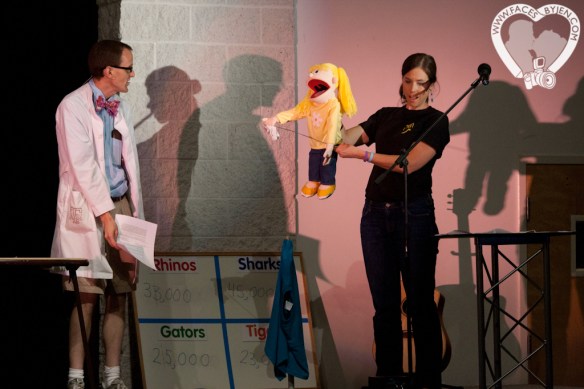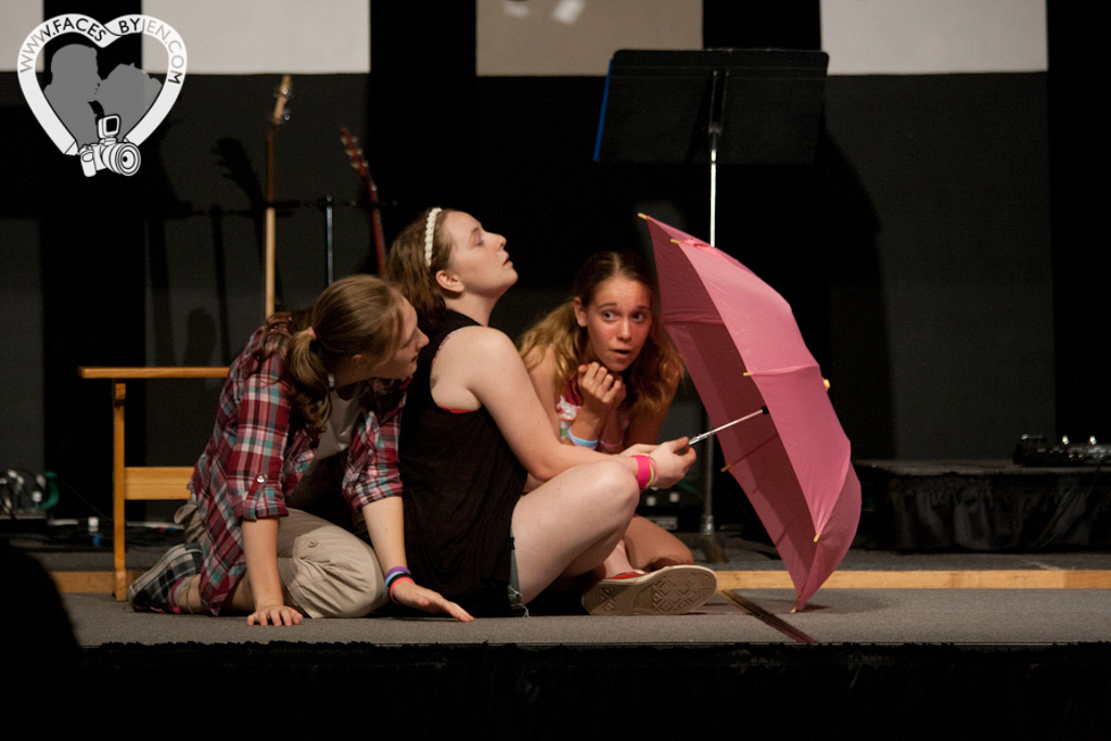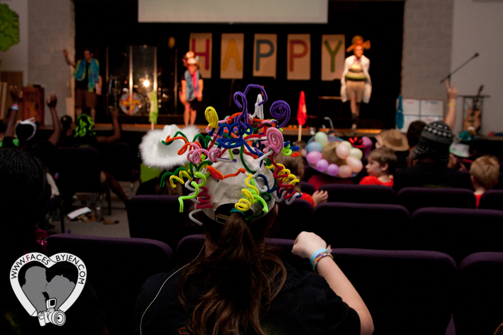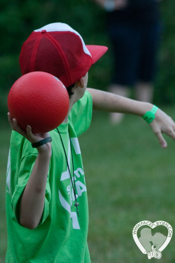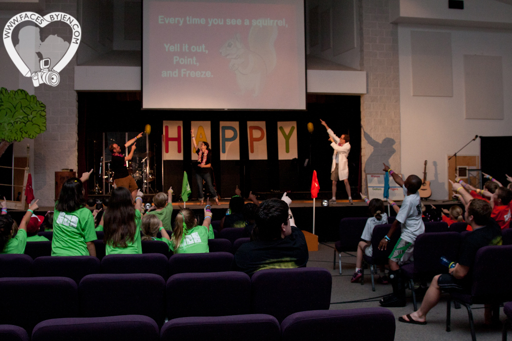 Every night they announce the three rules. The first two are obvious (don’t talk when someone on stage is talking and keep your hands to yourself). But the third rule is different every night. The first night it was, whenever someone says “vegetables” the campers have to sing “I Love Vegetables!” The last night was “Every time you see a squirrel, yell it out, point and freeze” (think the movie UP). It was so neat to see the kids getting so into everything. I think the last rule was my favorite. 🙂