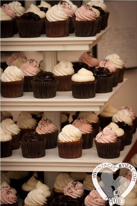 My favorite thing about weddings is how each one is so unique. Every bride has a “vision” for what she wants the overall effect to be and I love how the cake and/or cupcakes can play such a vibrant role in that vision. I love to set up a display and see how it works within the overall decor and to see how it can become a focal point that gets everyone excited!